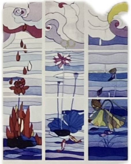 雲彩代表天主臨在,荷花是人靈象徵。